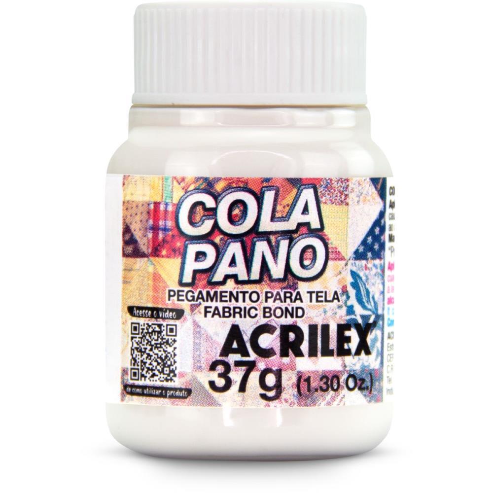 Cola Pano da Acrilex pode usar com pincel ou com bico aplicador, ela já vem pronta para uso. Pode ser usada em acabamentos com costura, para a diluição, use o diluente para tintas e tecidos. Secagem ao ar e não é resistente a sucessivas lavagens. Tamanho: 37g