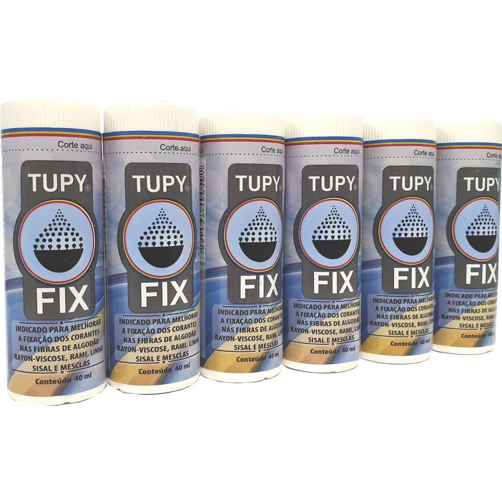O TUPYFIX é indicado como agente de tratamento de fixação dos corantes em tecidos ou fibras de algodão, linho, sisal, rami, rayon-viscose e mesclas, proporcionando maior resistência a lavagem e desbotamento. Pode também ser utilizado em peças de algodão que soltam corante quando estão novas como toalhas de banho, tapetes e roupas de vestuário em geral. Deve ser utilizado em banho morno, sem ultrapassar 80 graus, conforme as instruções do tubete.