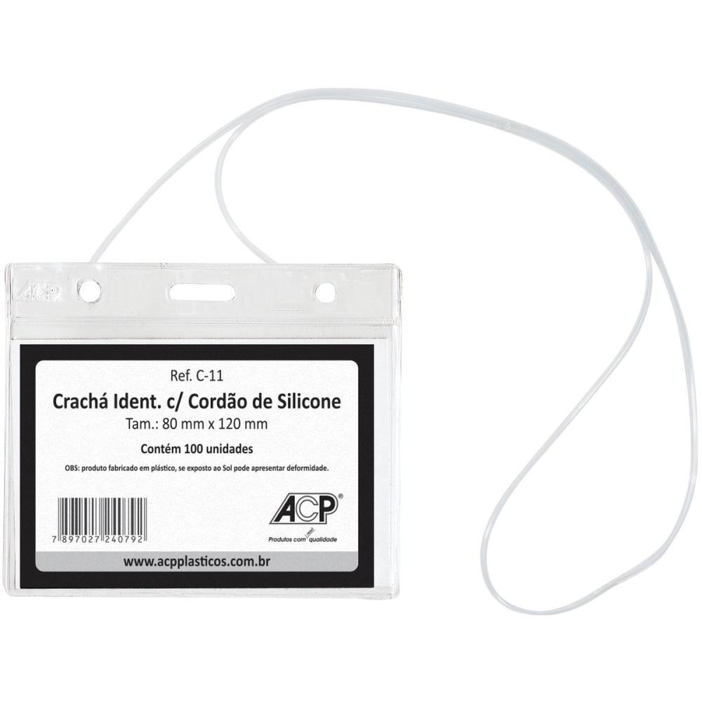 Crachá com cordão na cor Cristal (seu cordão é de silicone). Utilizado para proteger bilhete único de transporte, carteirinhas e cartões diversos. Produto fabricado em plástico, se exposto no sol pode apresentar deformidade.