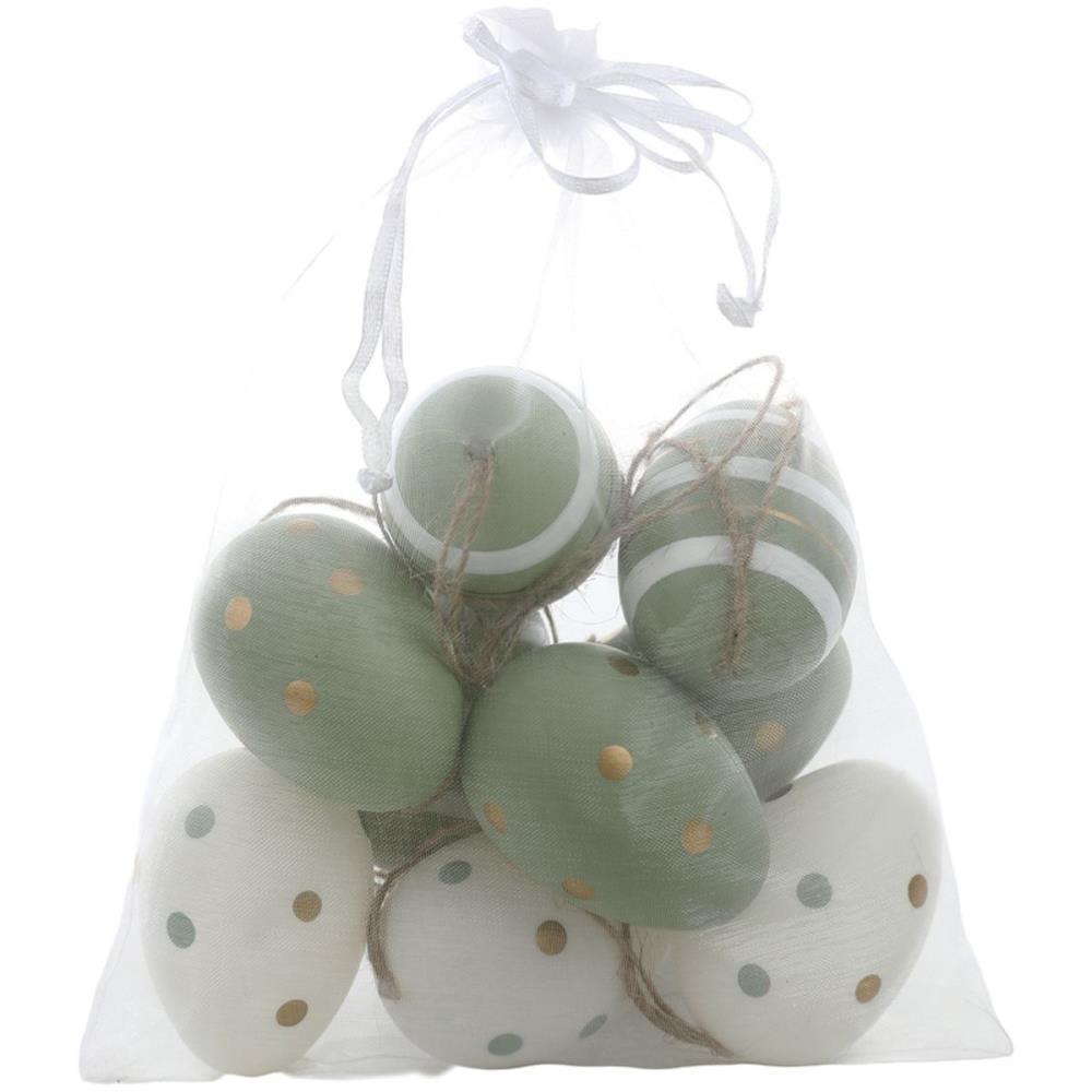 Decoracao de Pascoa Ovinhos DEC. VERDE/BRANCO 6CM PCT.C/09