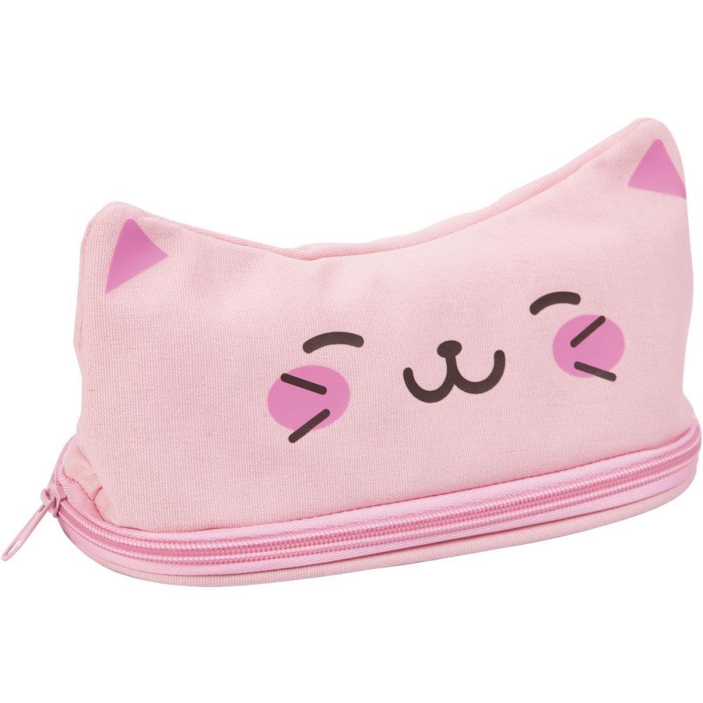 Estojo Simples Kawaii Gatinho Rosa Lona