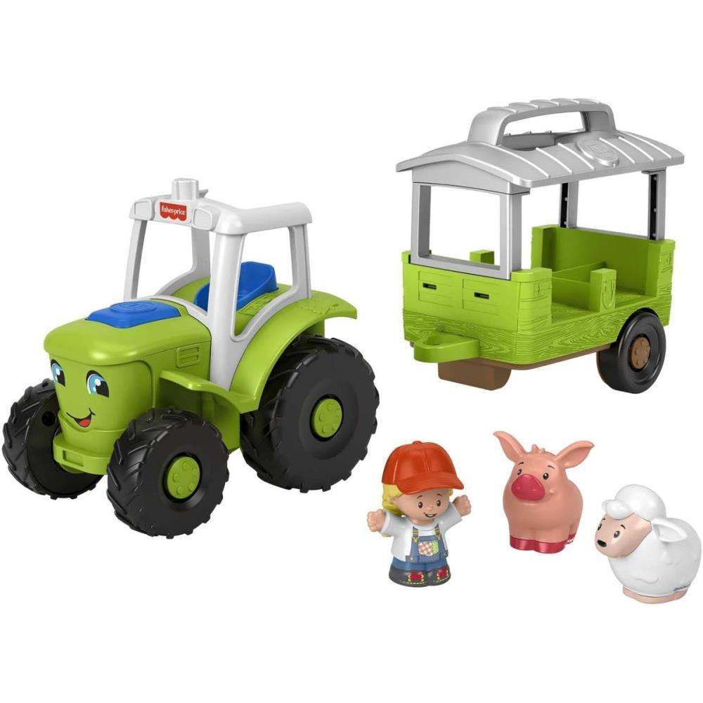 As crianças podem se divertir na fazenda com o trator! Pressione o botão do banco do motorista ou do trailer para ativar sons, músicas e frases divertidas.