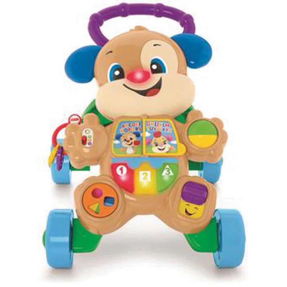Vamos dar uma volta, bebê! O Cachorrinho é o amigo perfeito para o seu bebê, proporcionando atividades manuais para bebês que sentam e diversas frases de incentivo e apoio aos primeiros passinhos. Conforme as crianças crescem e começam a andar, o Cachorrinho vai ensinando o alfabeto, formas, cores, números e até mesmo palavras em espanhol! Onde o desenvolvimento se transforma em diversão Aprendizado: Músicas e frases divertidas ensinam ao seu bebê o alfabeto, as cores, os números, palavras em espanhol e muito mais! Coordenação motora grossa: Os pequenos músculos trabalham muito quando os bebês sentados se esticam para alcançar algo e interagem com as atividades, e quando fazem o esforço de se levantar e andar atrás do andador. Curiosidade e descoberta: Conforme os bebês descobrem como ativar as músicas e frases, apertando os botões ou empurrando o andador, eles notam que suas ações podem ter consequências divertidas. Ei, isso se chama causa e efeito!