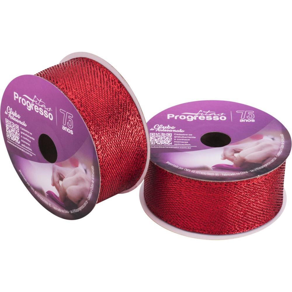 Fita Aramada Natal 38 mm x 10 metros Metalizado Vermelho - Fitas Progresso