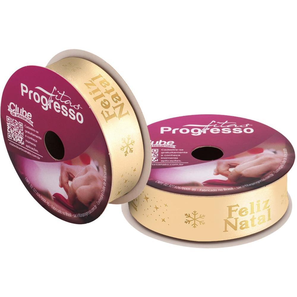 Fita de Cetim Natal 22 mm x 10 metros Feliz Natal Dourado - Fitas Progresso