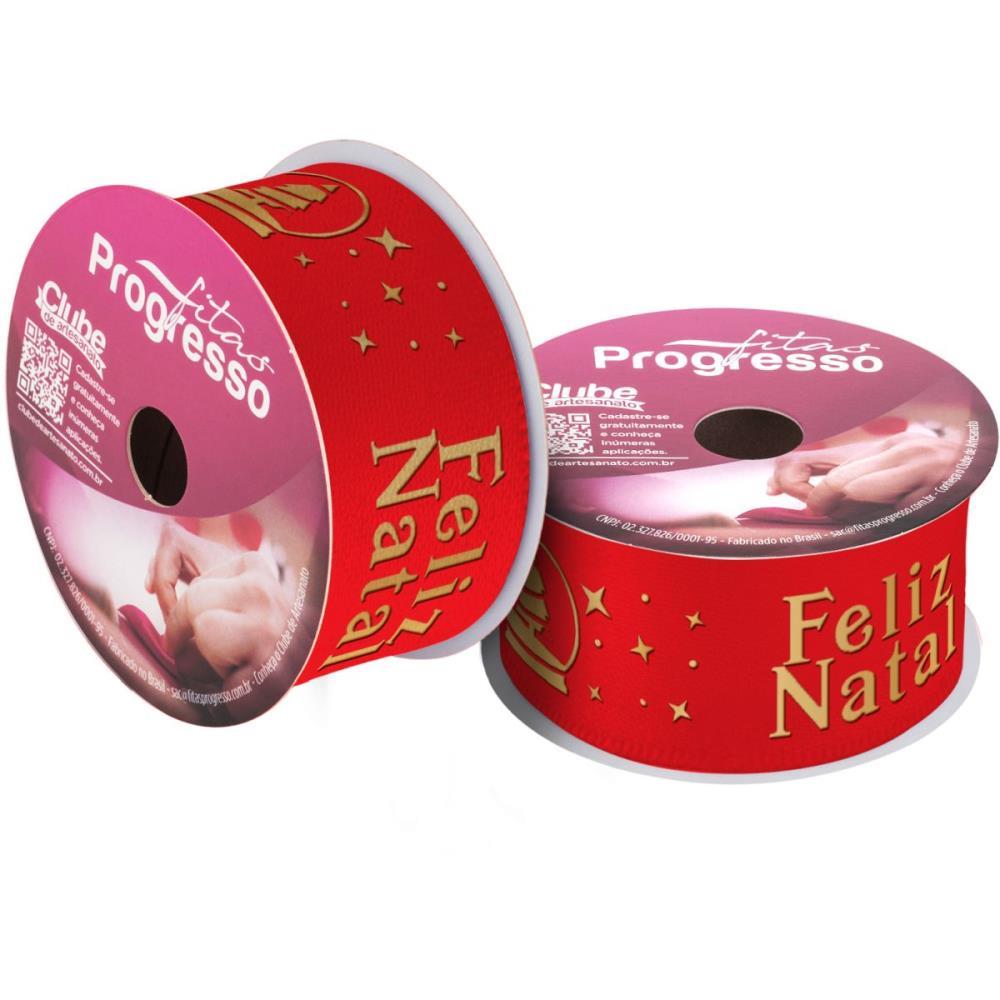 Fita de Cetim Natal 38 mm x 10 metros Feliz Natal Vm Relevo - Fitas Progresso