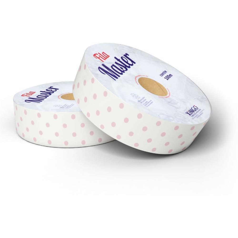 Fita de poli, decorada com estampa de bolinha, poa, qualidade Master. Ideal para lacos e fechamento de embalagens para presente, vasos e bouquets de flores, cestas e decoracoes em geral.