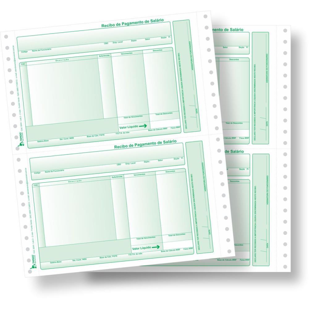 Formulário Continuo - Recibo de Pagamento LAB2 - 2 vias com carbono - fundo verde - caixa com 2000 unidades.