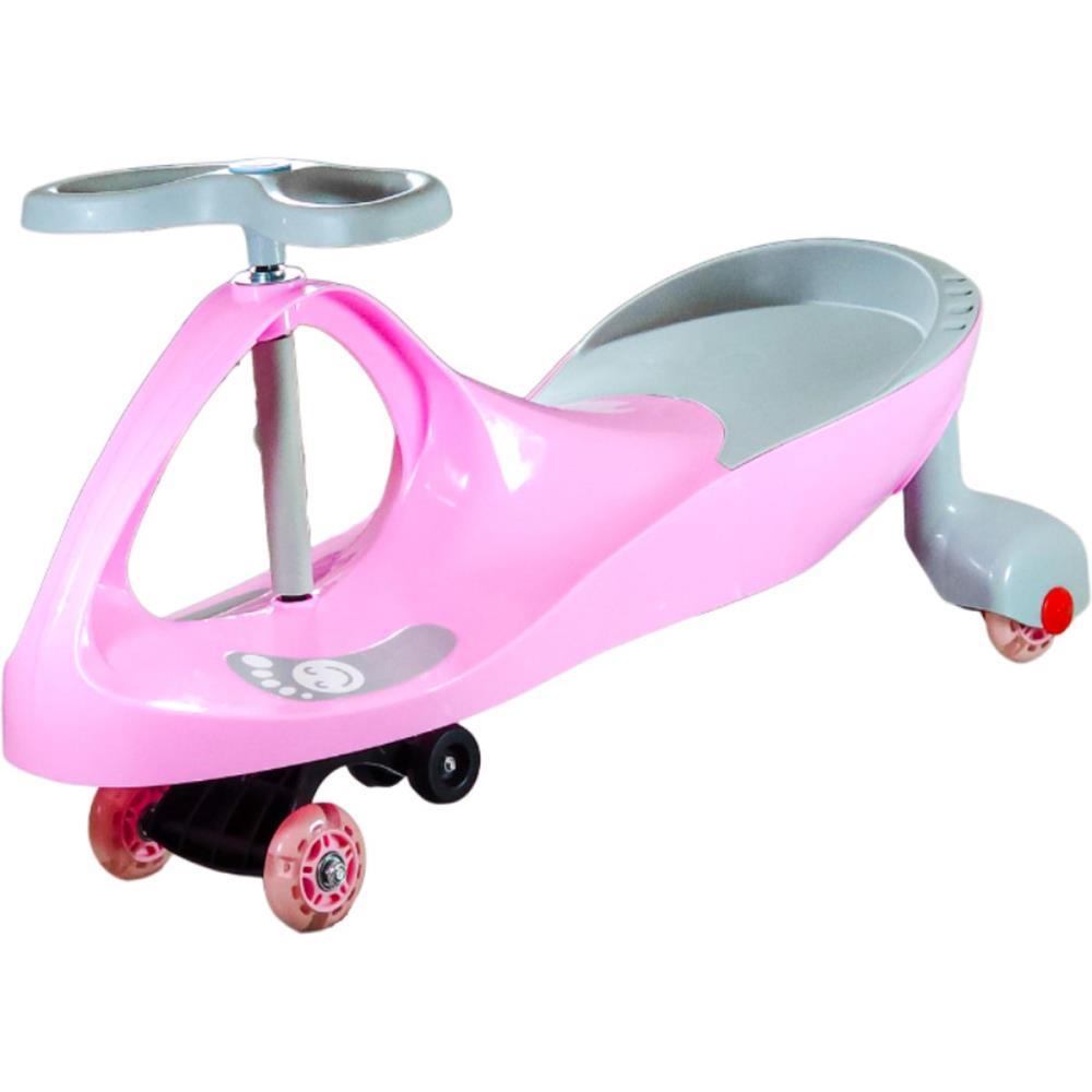 Carrinho Gira e Anda com Luzes nas rodinhas! A diversao garantida entre criancas e adultos. Basta ir girando o volante que o carrinho comeca a andar, simples assim! Suporta ate 100kgs, tornando a brincadeira para todos os tamanhos e idades! Facil de montar, ele e o presente perfeito.