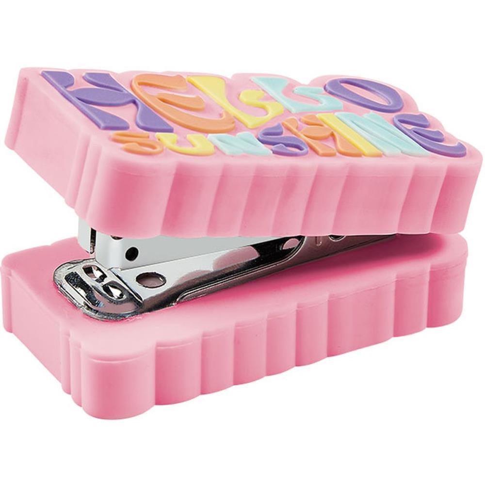 A dose de felicidade do seu dia! Inspirada na tendencia dopamine fashion, a colecao Dopamina conta com cores vibrantes, estampas divertidas e muita abstracao! O grampeador mini Dopamina, tem corpo emborrachado e frase divertida estampada. Ideal para grampos tipo numero 10 e capacidade de grampear ate 10 folhas.