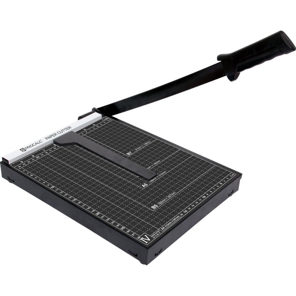 Guilhotina para 10 folhas A4 - Feito em aco - cor preta - Pes emborrachados - Cabo de plastico em ABS - Prensa com Ima - Marcacoes em A4, B5, A5, B6 e B7 para auxiliar no corte Peso: 1,80 kg