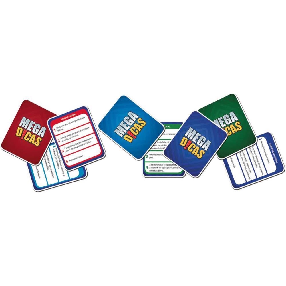 Mega Dicas, de 2 a 4 jogadores. Objetivo chegar até a casa final do tabuleiro com a maior contagem de pontos. Pense rápido e utilize todo o seu conhecimento para adivinhar a palavra com a menor quantidade de dicas possível. Teste sua capacidade de dedução com este divertido jogo!