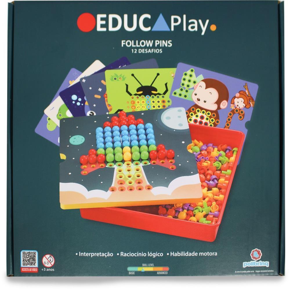 O Follow Pins e um jogo divertido e educativo que estimula o desenvolvimento cognitivo das criancas. Com 12 desafios cativantes, 12 cartelas e 180 pinos coloridos, o jogo oferece uma experiencia de aprendizado envolvente. Ao separar os pinos por cor e sequencia, as criancas desenvolvem habilidades de interpretacao, raciocinio logico e coordenacao motora, ao mesmo tempo em que se divertem e aprendem de forma interativa.