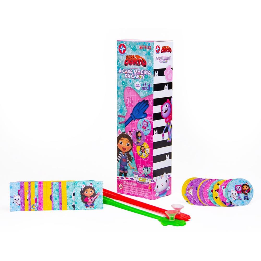 Uma versão do clássico Tapa Certo com os personagens da serie de grande sucesso entre as crianças A Casa Magica da Gabby. O jogo funciona da seguinte maneira: as cartas quadradas ficam viradas para baixo enquanto as cartas redondas ficam viradas para cima. Um jogador deve virar uma carta quadrada, revelando sua imagem, e os jogadores devem rapidamente dar um tapa na carta redonda de mesma imagem utilizando suas mãozinhas plásticas. Quem conseguir mais cartas no final do jogo e o vencedor!