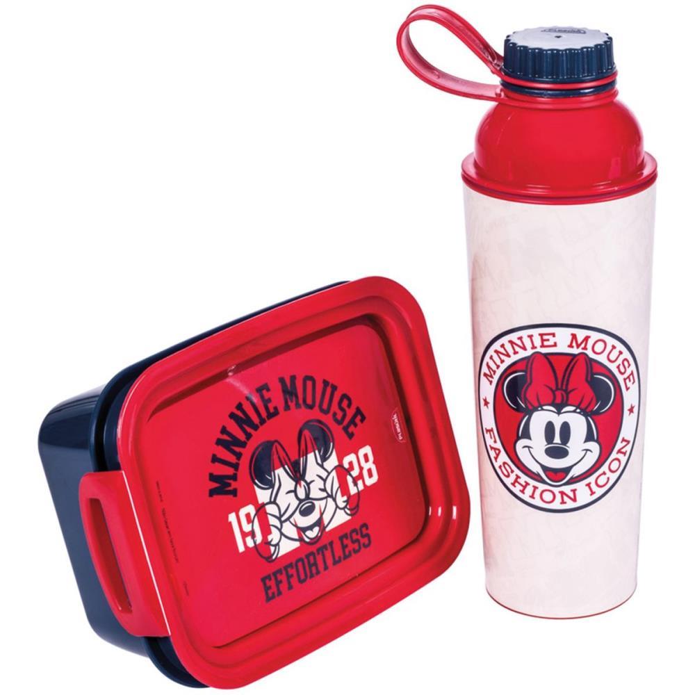 Nosso kit da Minnie e uma excelente opcao para presentear quem e apaixonado pela personagem ou para renovar seus produtos de uso diario. - A garrafa tem capacidade para 600 ml. - A marmita possui divisoria interna removivel, tampa com borracha de vedacao e travas laterais, o que garante seguranca ao fechamento. - Itens colecionaveis. - Atoxicos e livres de bisfenol-A BPA FREE. - Fabricados em polipropileno PP. - Kit composto por garrafa e marmita hermetica. Acompanha embalagem especial.