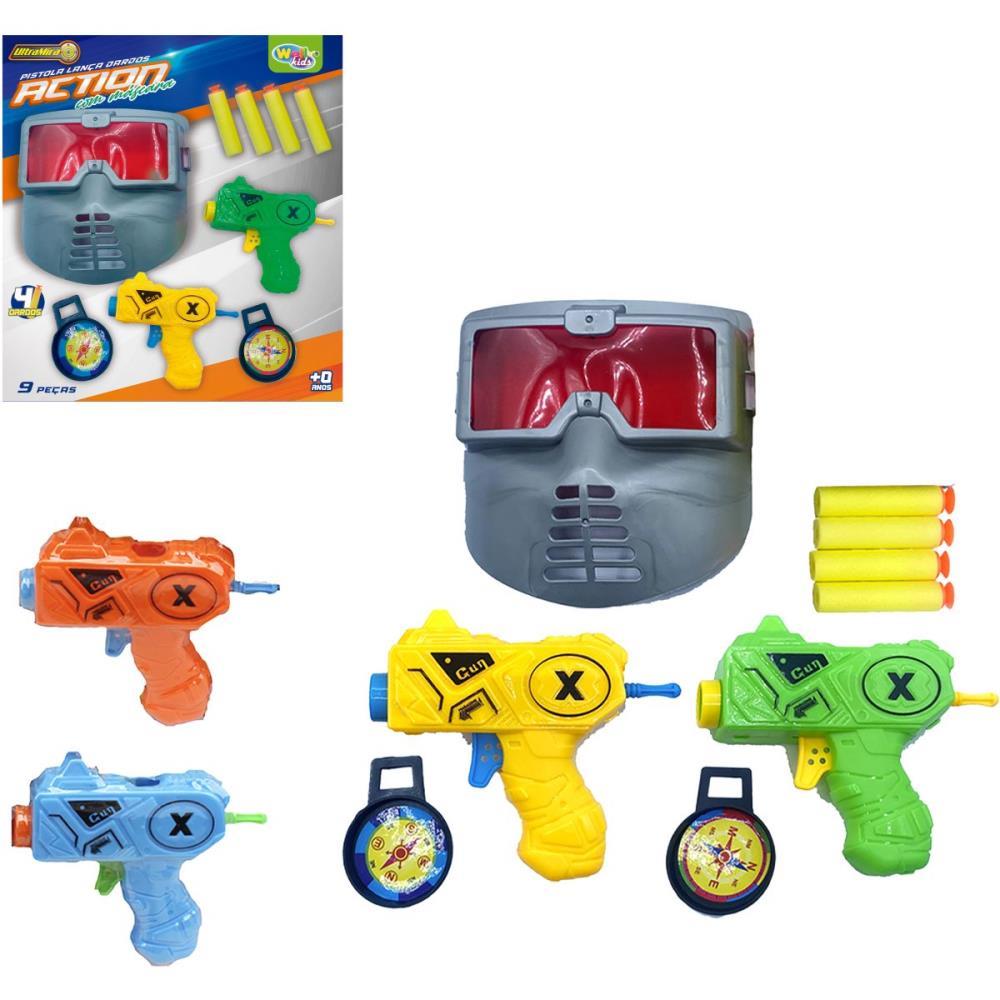 PISTOLA LANCA DARDOS DUPLA COM MASCARA 9 PECAS TAMANHO DA PISTOLA: 10,5CMx 12CMx3CM