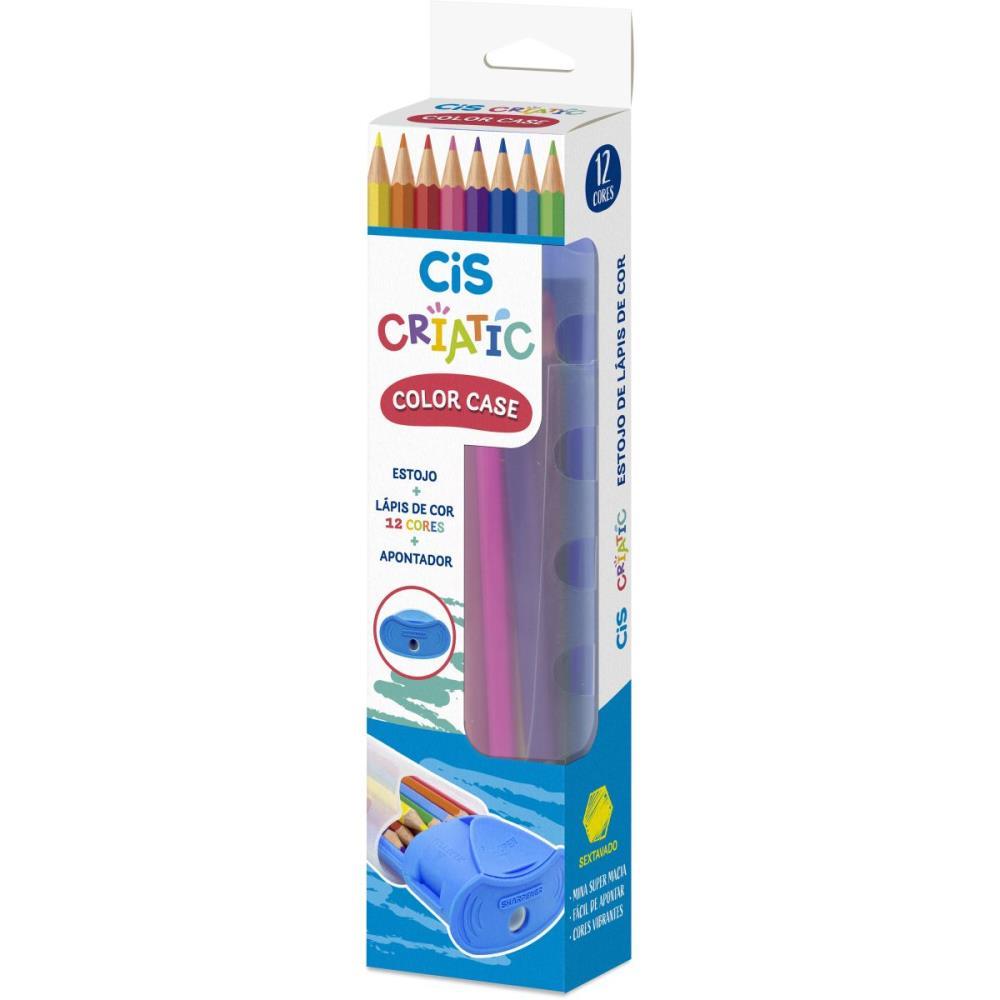 Lapis De Cor Sextavado Cis Color Case Azul 12 Cores