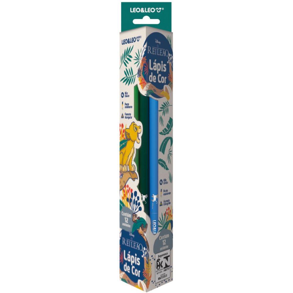 Os Lápis de Cor Triangular O Rei Leão Leo e Leo 12 Cores da Leonora são uma linha inspirada no filme "O Rei Leão", com personagens como Simba e Pumba. Eles possuem um formato triangular, que facilita a empunhadura e proporciona conforto durante o uso, ideal para o desenvolvimento motor das crianças. Cada lápis é feito com resina plástica, pigmentos e cera atóxicos, garantindo segurança infantil. A ponta resistente prolonga o tempo de uso e facilita o apontamento