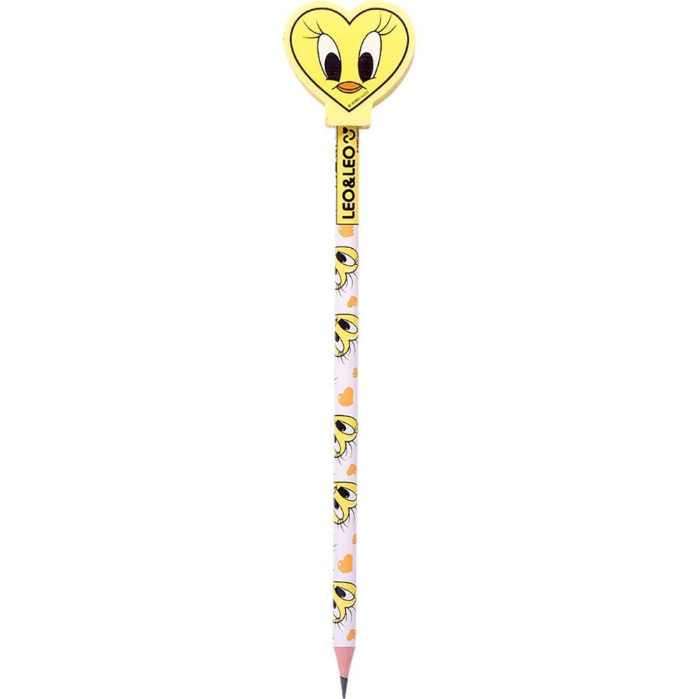 Lapis Preto Redondo Decorado Looney Tunes Com Borracha