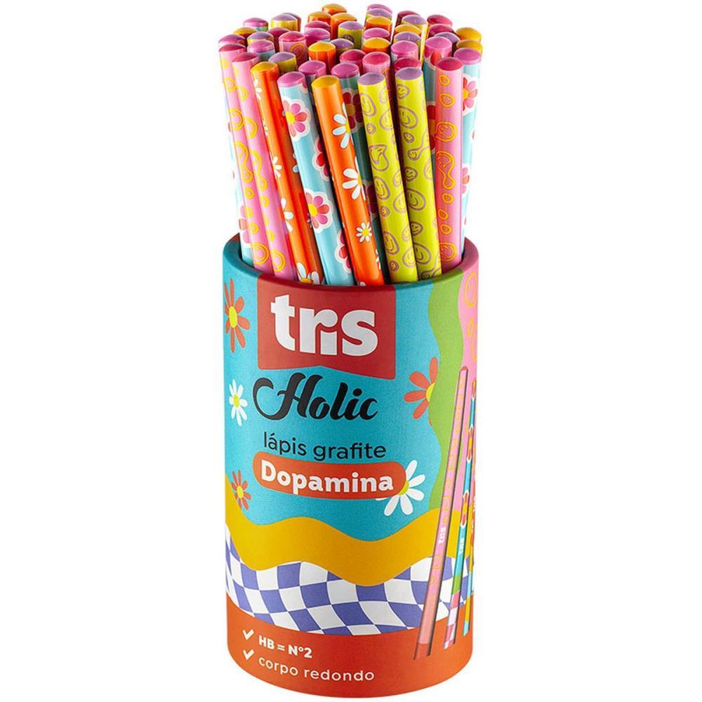 A dose de felicidade do seu dia! Inspirada na tendencia dopamine fashion, a colecao Dopamina conta com cores vibrantes, estampas divertidas e muita abstracao! O lapis grafite Dopamina possui 4 estampas divertidas, alem de corpo em madeira e formato redondo.