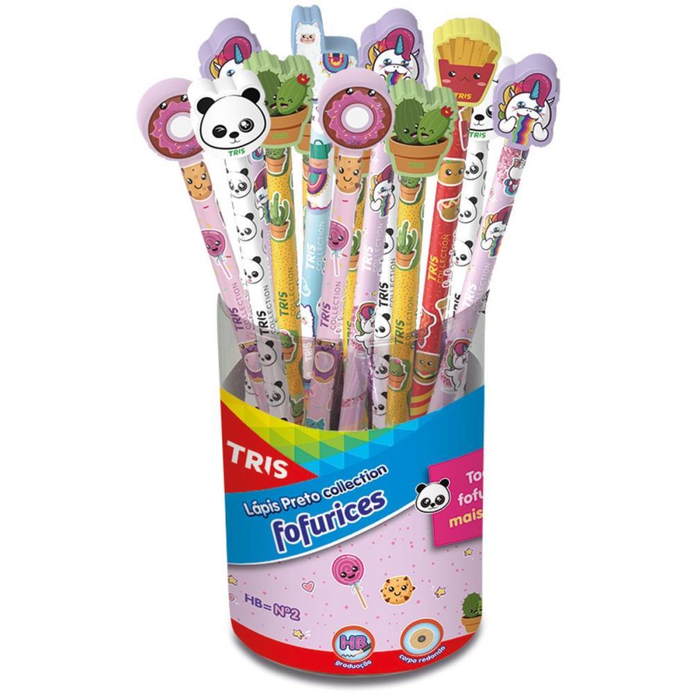 Lapis preto (redondo) - Tris Fofurices c/Borracha - pote com 24 unidades