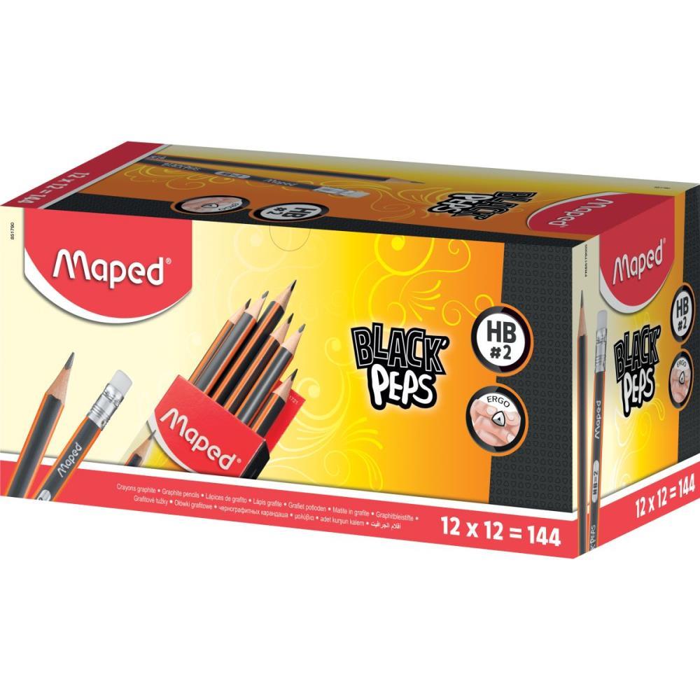 Lápis Preto Triangular Black Peps Hb Com Borracha - Maped