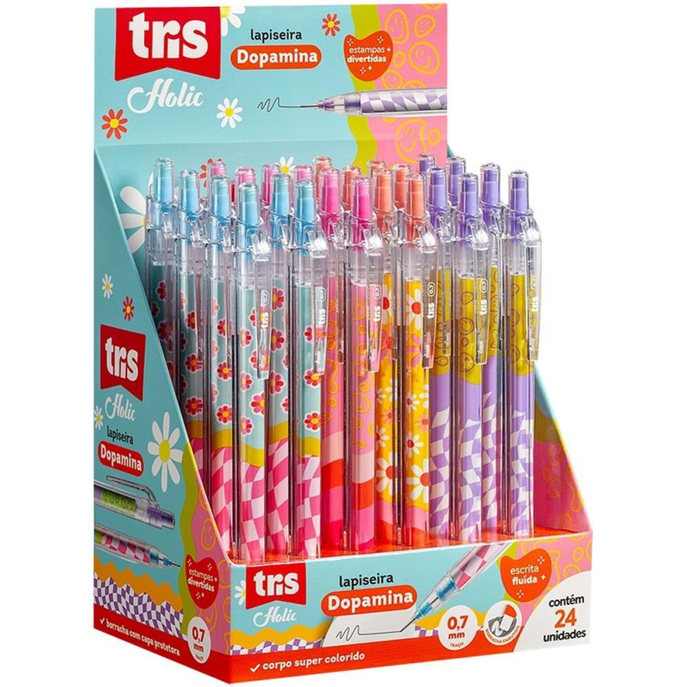 A dose de felicidade do seu dia! Inspirada na tendencia dopamine fashion, a colecao Dopamina conta com cores vibrantes, estampas divertidas e muita abstracao! A lapiseira Dopamina possui corpo com estampas divertidas, traco 0,7mm e borracha colorida no topo. Seu corpo possui formato triangular e sao 4 opcoes de cores e estampas.