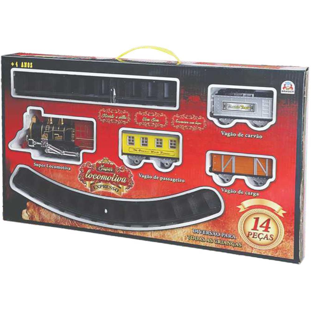 Contém: 1 locomotiva / 1 vagão de passageiros / 1 vagão de carvão / 1 vagão de carga / 6 trilhos em curva / 4 trilhos retos. Recomendado para crianças a partir de 4 anos.