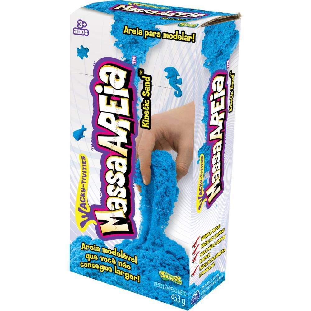 Areia de modelar que nunca seca, fácil de manusear e modelar. Nas cores verde, azul, rosa e violeta.