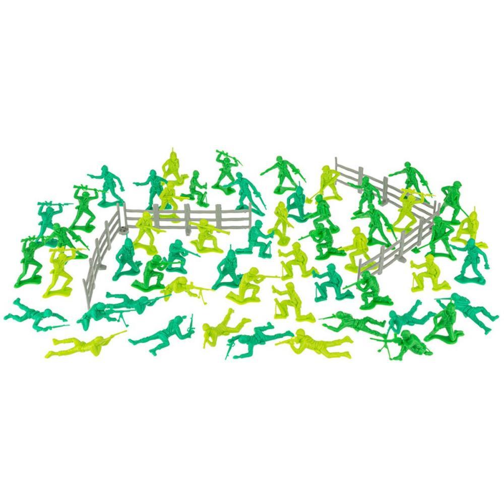 Conjunto com 54 Miniaturas de Soldados de Exercito brasileiros, em diferentes posicoes de batalha e 4 Cercados.