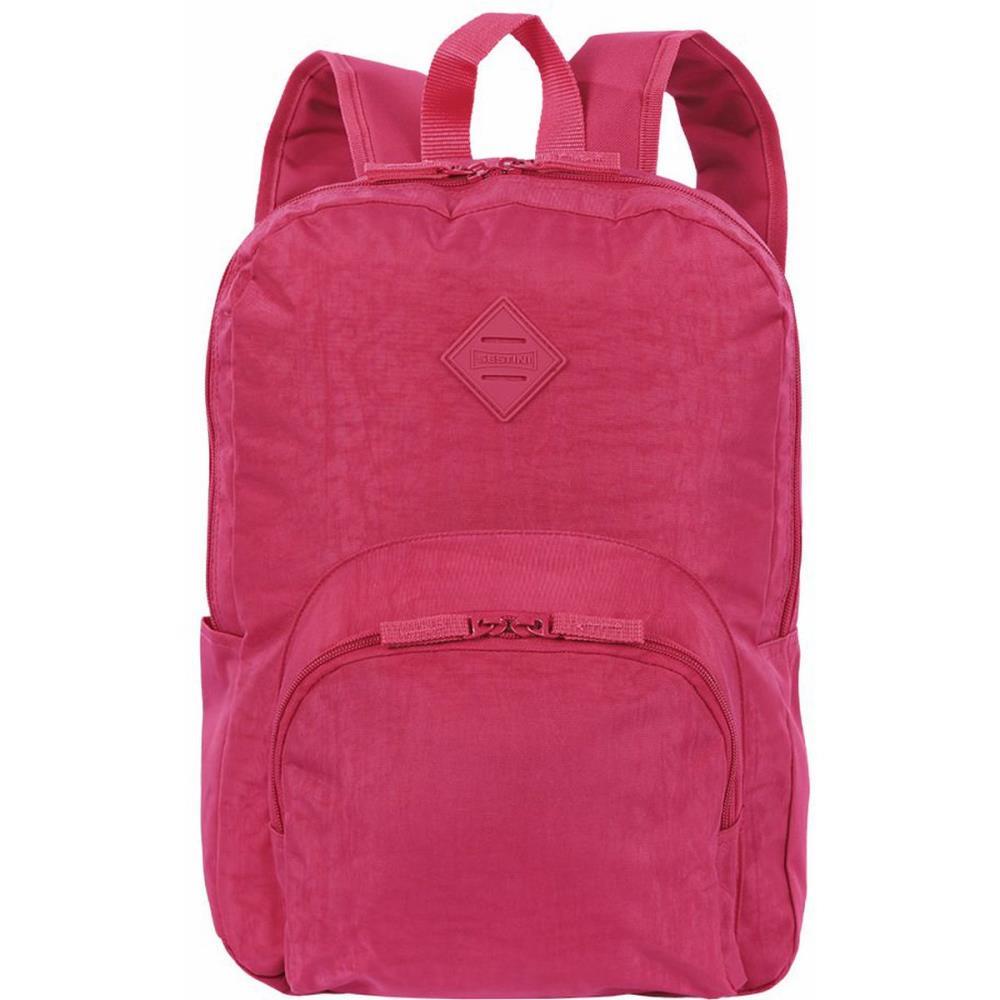 A linha Sestini Happy Crinkle conta com uma variada gama de cores para escolher a que mais combina com voce! Toda na cor Pink, desde o tecido ate os detalhes, esta mochila e produzida em nylon, um material resistente e com textura leve e lisa, com alcas de costas espumadas e regulaveis, para um transporte confortavel. Espacosa, conta com um amplo compartimento para levar todos seus pertences, bolso frontal para pequenos objetos e bolsos laterais ideais para garrafas.