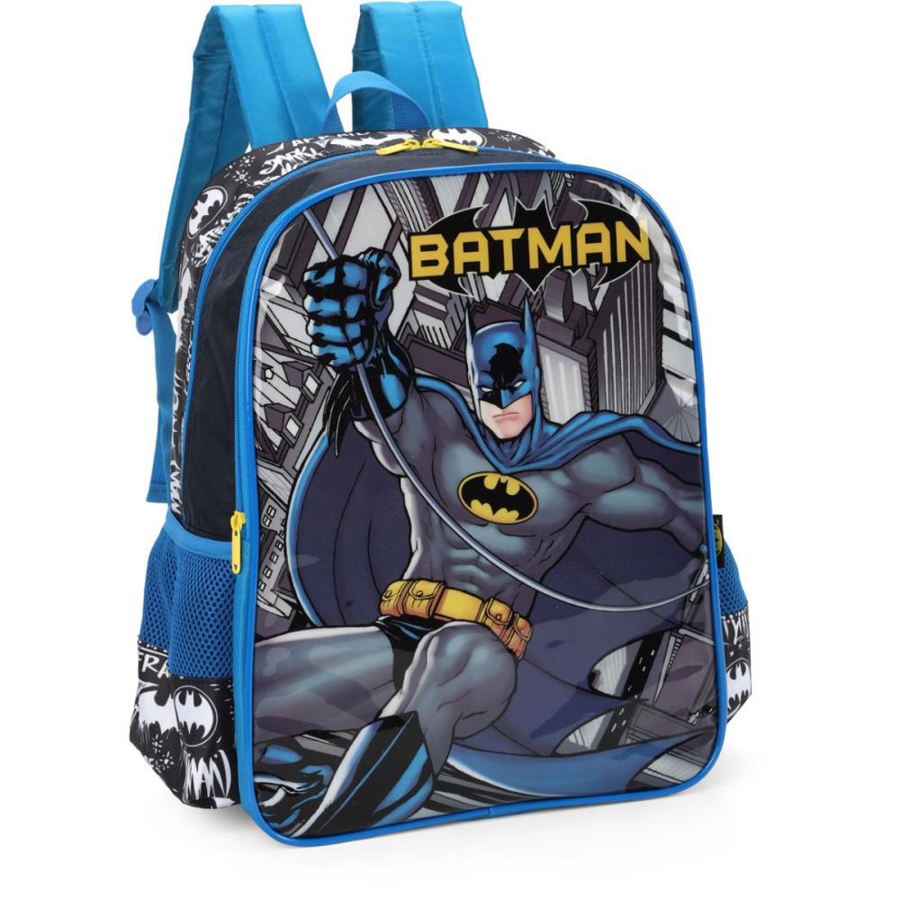 " Com a mochila “Batman” ir para a escola nunca foi tao divertido. A mochila possui um compartimento amplo e dois bolsos laterais de mesh com poliester para que voce possa levar seus objetos com toda a seguranca e autonomia necessaria, alem de um bolso frontal super espacoso deixando inda mais divertido levar os materiais. Com puxadores personalizados. A mochila possui estampas modernas e divertidas!