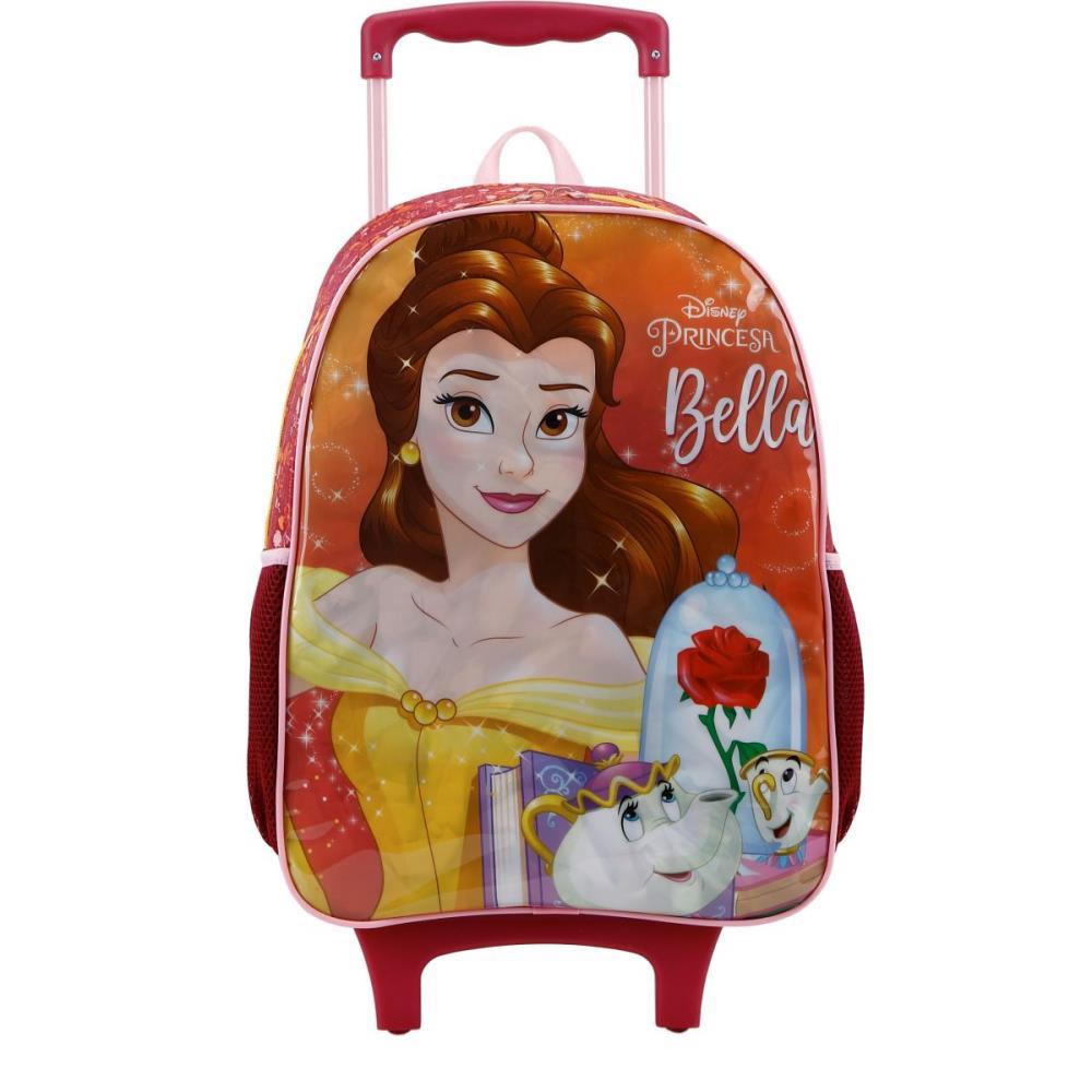 Em tamanho 16", produzida em poliester resistente e estampado. Painel frontal PVC Cristal - Compartimento principal amplo, 2 bolsos laterais mesh, ziper com puxadores simples e alca de mao em nylon . Carrinho em metal com travas.