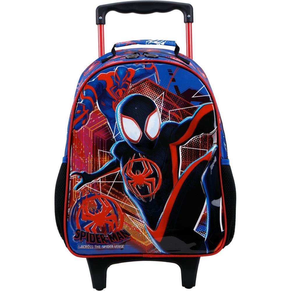 Em tamanho 16" , produzida em poliester resistente e estampado. Painel frontal PVC patch - Compartimento principal amplo , 2 bolsos laterais mesh, ziper com puxadores personalizados, alca de mao em nylon com poliester e piping forrado. Carrinho em metal com travas.