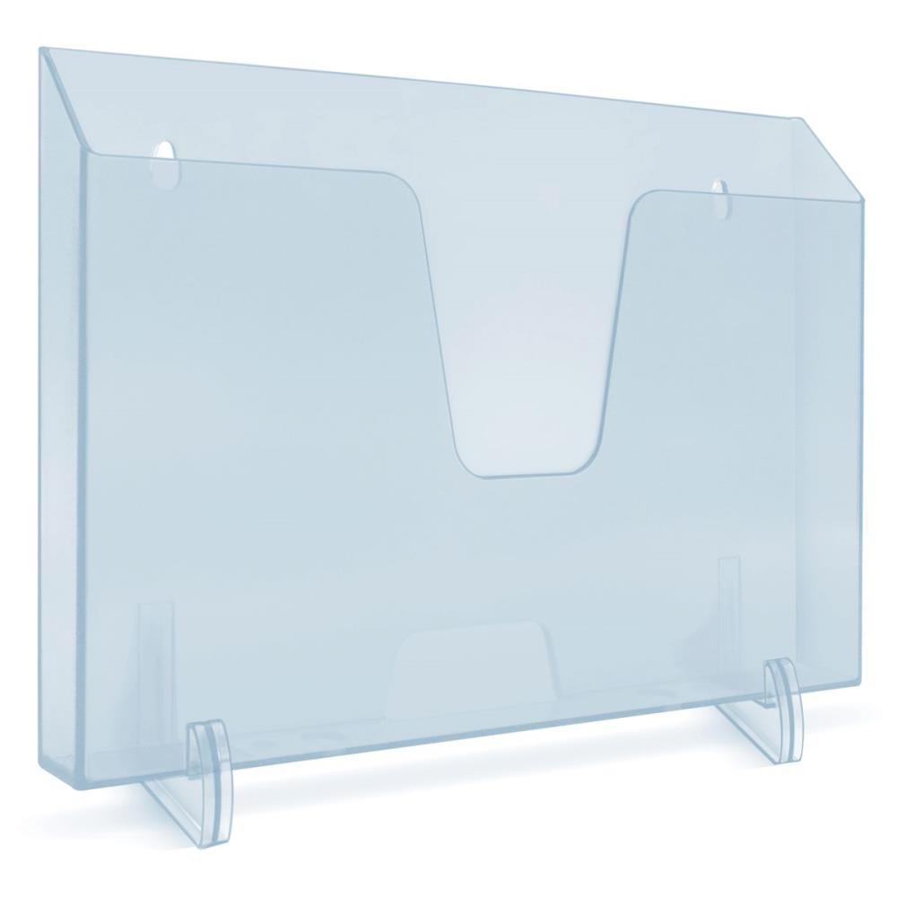 Expositor fabricado em poliestireno. Alta qualidade, resistência e durabilidade. Perfeito para expor catálogos, folhetos, revistas etc. Pode ser utilizado em empresas, hotéis, hospitais, agências de turismo, restaurantes, concessionárias, feiras e exposições e outros. Ótima estabilidade sobre mesas e balcões com uso dos suportes de base inclusos. Possui orifícios na parte traseira, permitindo que o produto seja fixado ou pendurado (suportes para fixação não inclusos).