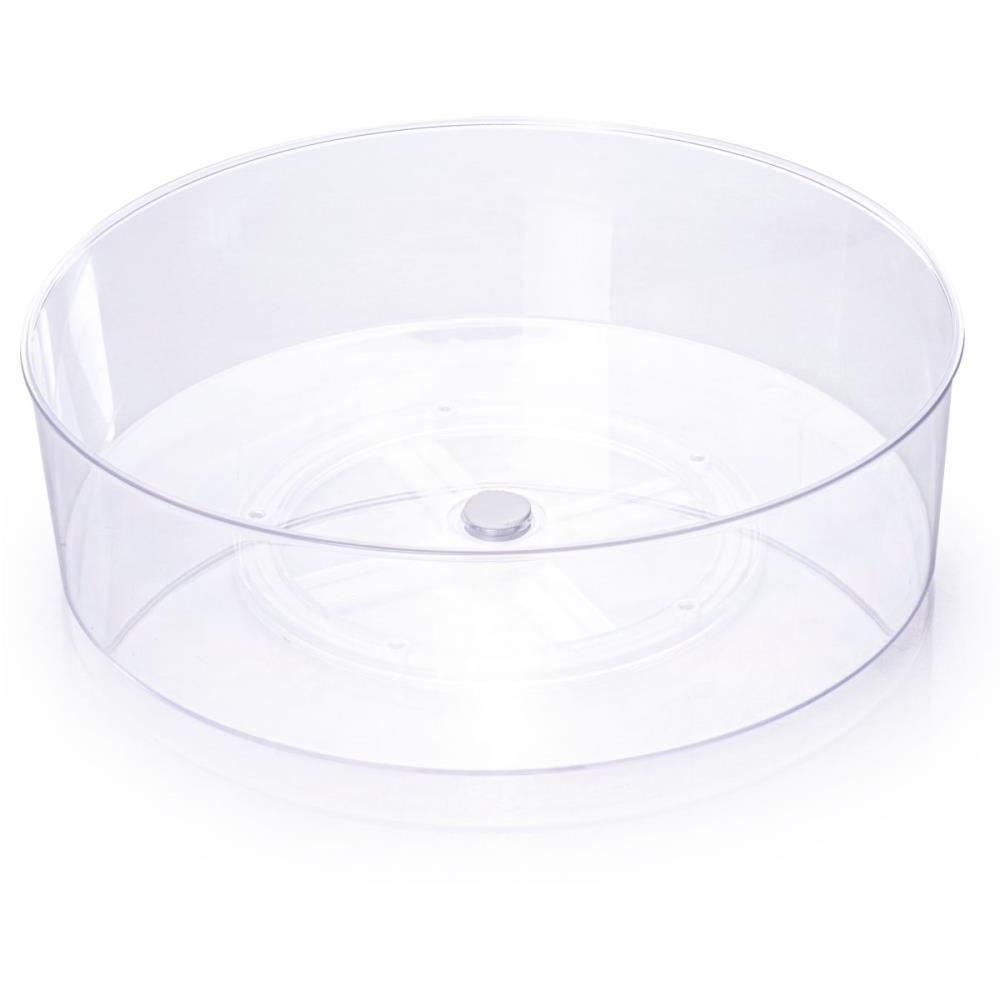 O organizador giratorio possui base que rotaciona 360° e facilita a segmentacao dos produtos escolhidos. - Fabricado em plastico poliestireno PS, atoxico e livre de bisfenol-A BPA FREE. - Supertransparente: rapida identificacao dos itens armazenados. O que nao e visto, nao e lembrado! - Versatilidade: diversos tipos de uso e ambientes, como bancada de maquiagem, condimentos e temperos, mesa do escritorio, itens de higiene pessoal... - O organizador giratorio pode ser usado de diversas formas, conforme o momento ou necessidade de organizacao. Dimensao: Diametro x Alt: 29,5x8,3 cm.