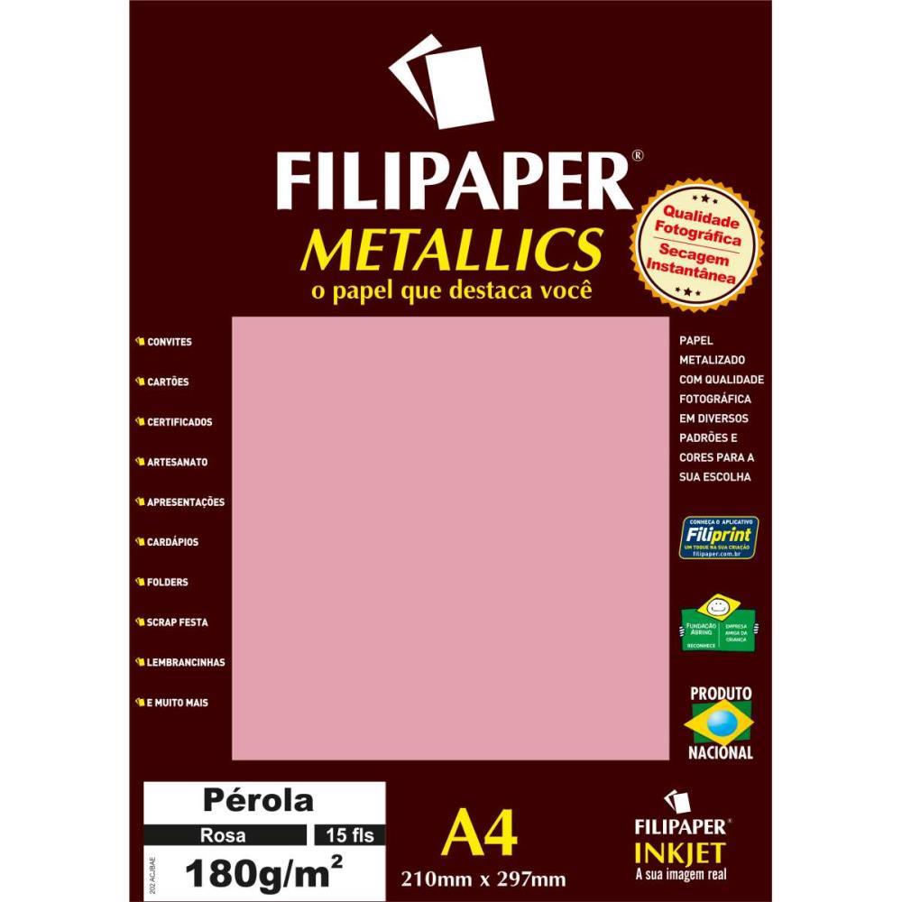 Papel A4 Metalico Perola Rosa 180GR. PCT.C/15