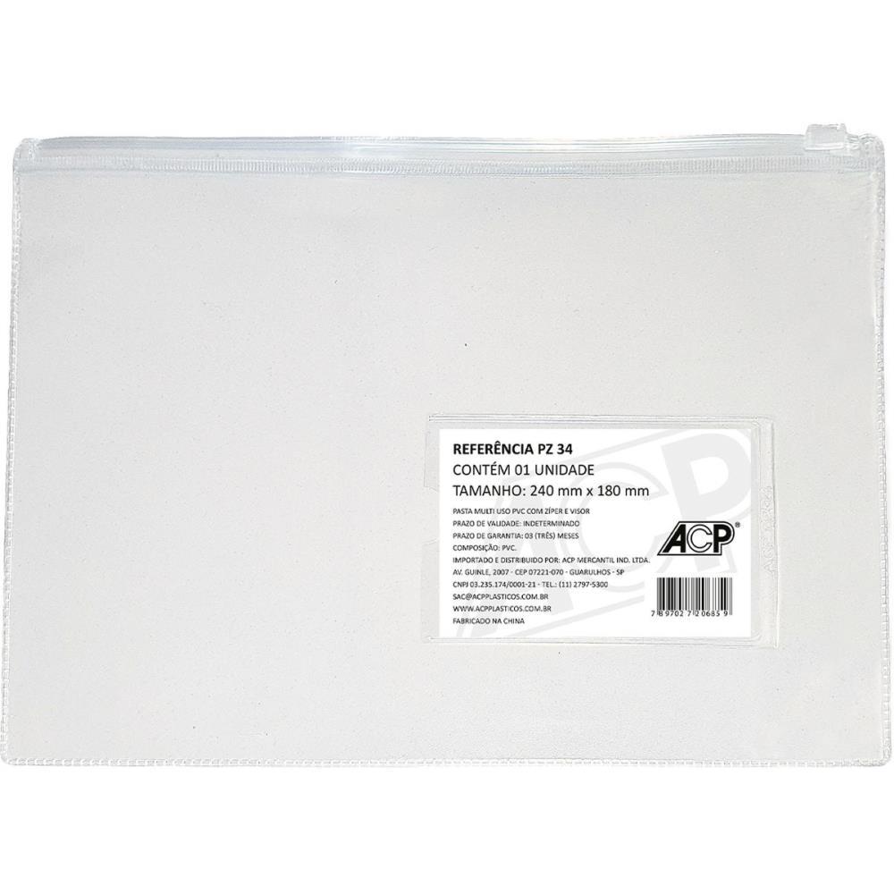 Pasta Malote multiuso Cristal. Seu modelo e transparente e com ziper plastico, perfeita para organizar, guardar ou transportar objetos. Material resistente com fechamento de facil manuseio.