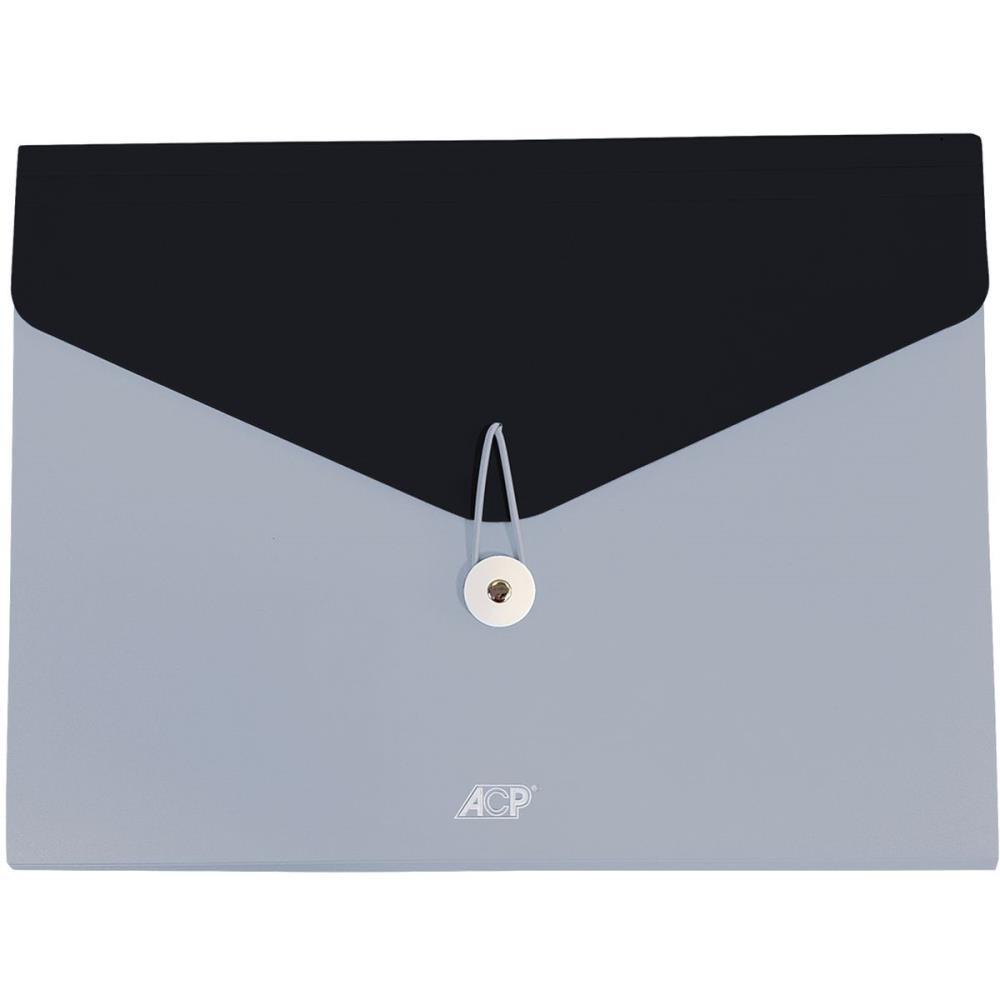 Pasta sanfonada A4 com 12 divisoes, resistente e duravel. Em uma linda combinacao das cores preto e prata.