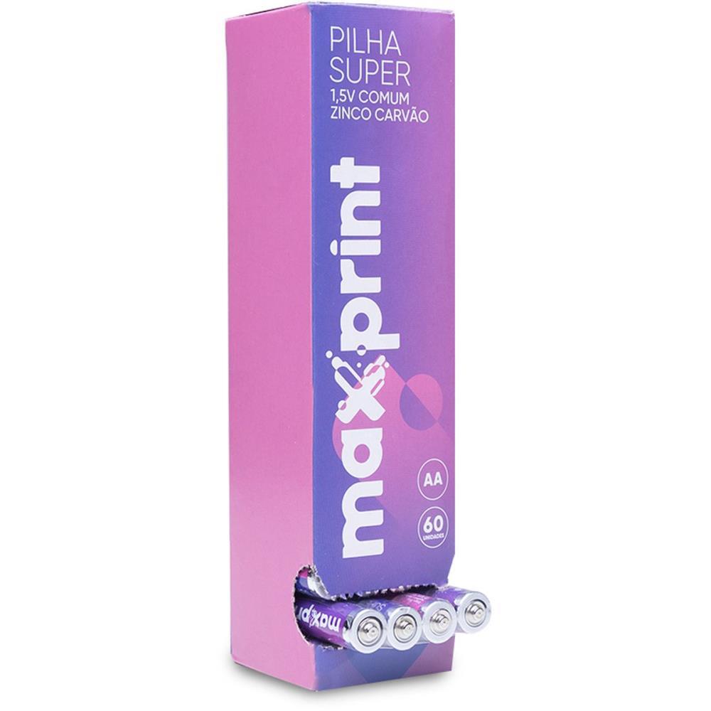 Caixa com 60 pilhas separadas em 15 embalagens plasticas com 4 pilhas AA comuns com 280mAh.