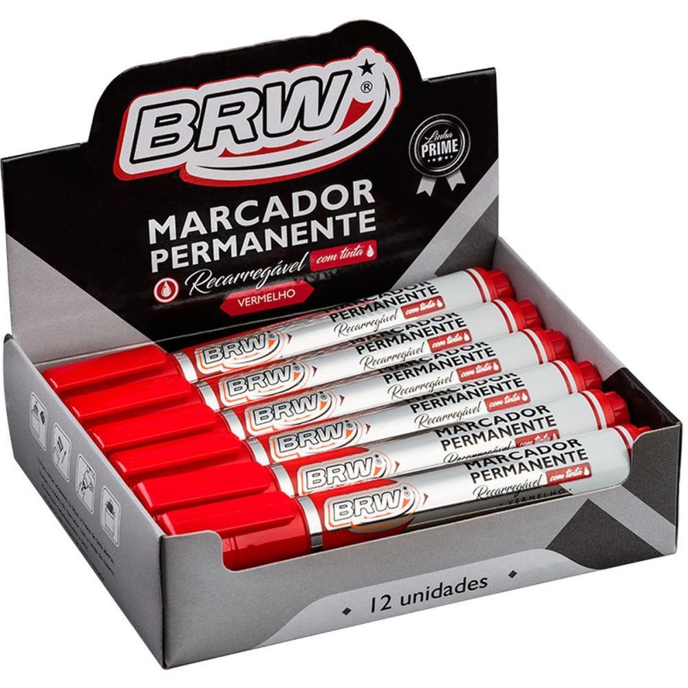 Com corpo robusto e prateado, o Marcador Permanente Recarregavel Vermelho - Prime BRW une o design bonito e moderno com alto rendimento e extrema qualidade!