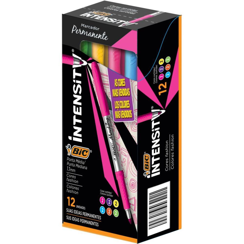 Marcador Permanente Cores Sortidas, Cartucho com 12 unidades.