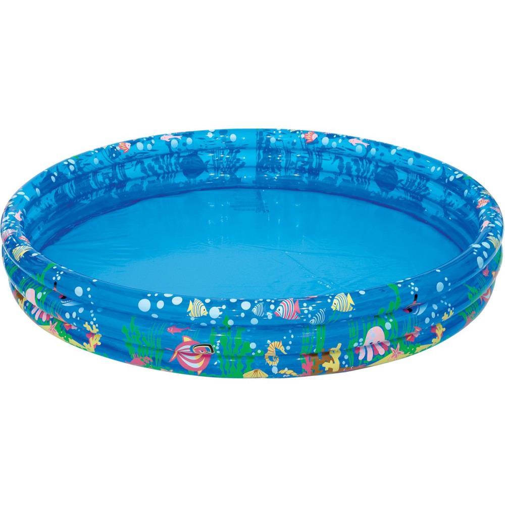 Piscina redonda estampada. Capacidade de 190 litros. Material atóxico. Capacidade: 253 litros com 100% de água e 190 litros com 75% de água.
