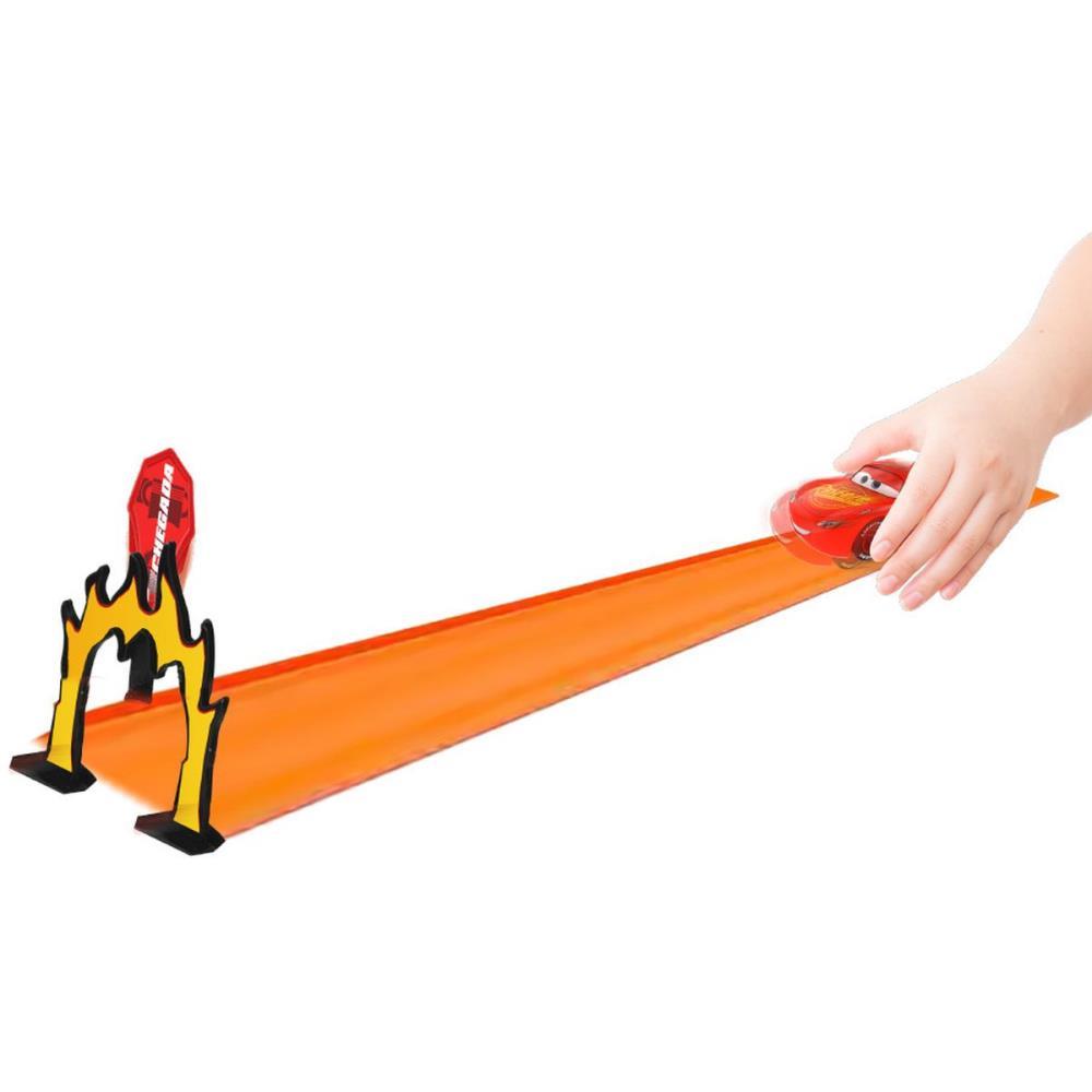 Nosso amigo relampago Mc Queen esta de volta! Com a super pista Chegada Triunfal. Com carrinho pull-back basta puxar o carro para tras, solta-lo que ele dispara com tudo! O carrinho vai disparar e ao chegar no arco, a peca salta para cima! E muita diversao! Essa pista o Queen chega arrebentando, nao fique de fora dessa aventura e diversao!