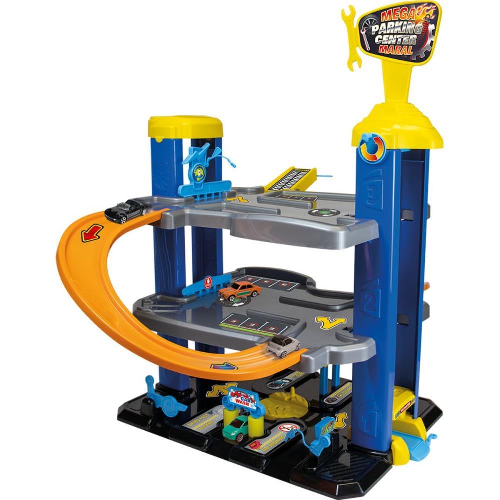 Com o Mega Parking Center Prata Laranja e lotado de acessorios como Rampa, heliporto, bomba de gasolina, lava rapido, carregador eletrico e elevador onde voce usa seus “possantes” para deslizar nas rampas, fazer aquela manutencao e lavacao e depois estacionar e relaxar!