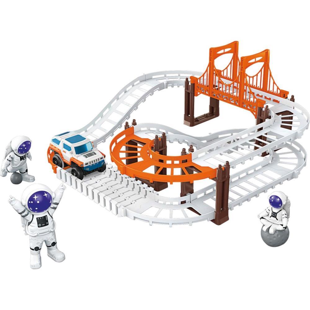 Leve a imaginacao do seu filho para outro planeta com a incrivel Pista Espacial! Um brinquedo educativo e superdivertido que simula uma verdadeira missao no espaco. O conjunto vem com trilhos montaveis, ponte, veiculo motorizado e mini astronautas, criando um cenario completo para horas de diversao!