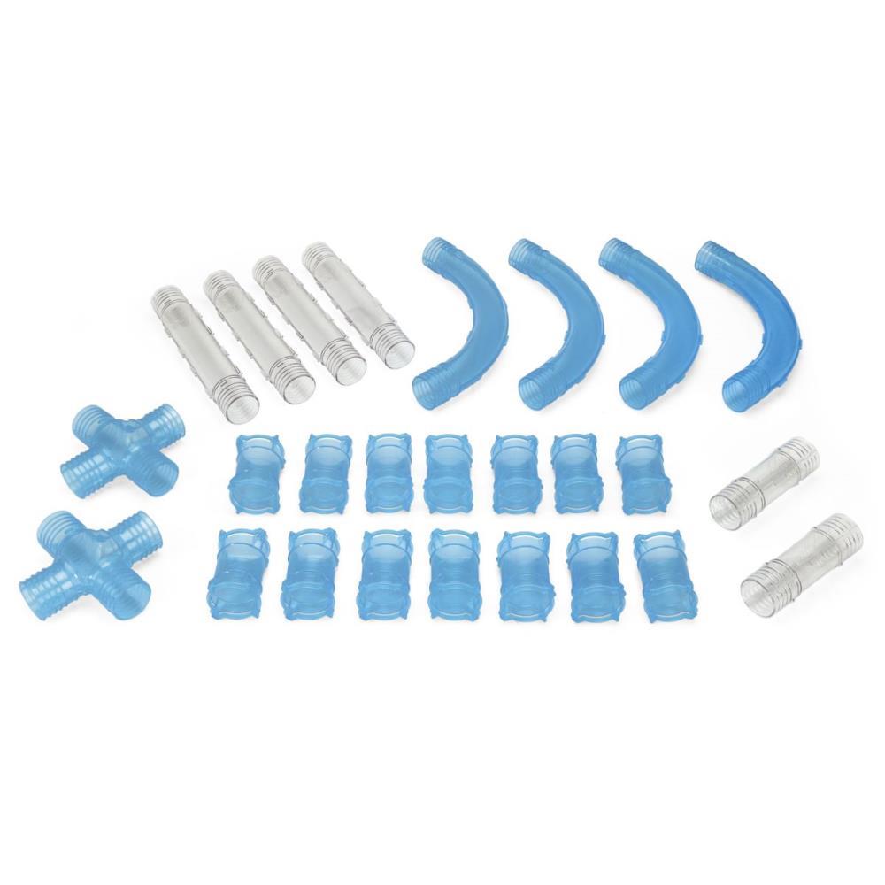 Sao 26 pecas para incrementar e turbinar os demais modelos da Linha Pista Irada, com 4 curvas, 4 retas longas, 2 retas curtas, 14 conectores e 2 intersecoes. Este brinquedo contem apenas pecas para montagem das pistas,nao vem equipado com carrinho e controle remoto.