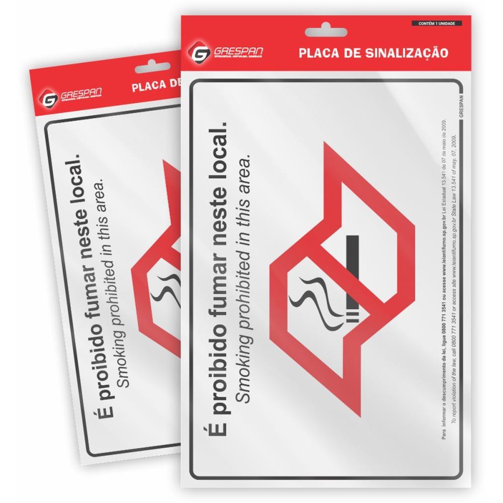 PLACA DE SINALIZACAO EM PVC COM DUPLA FACE - E PROIBIDO FUMAR 20X30 cm - Pacote com 5 unidades