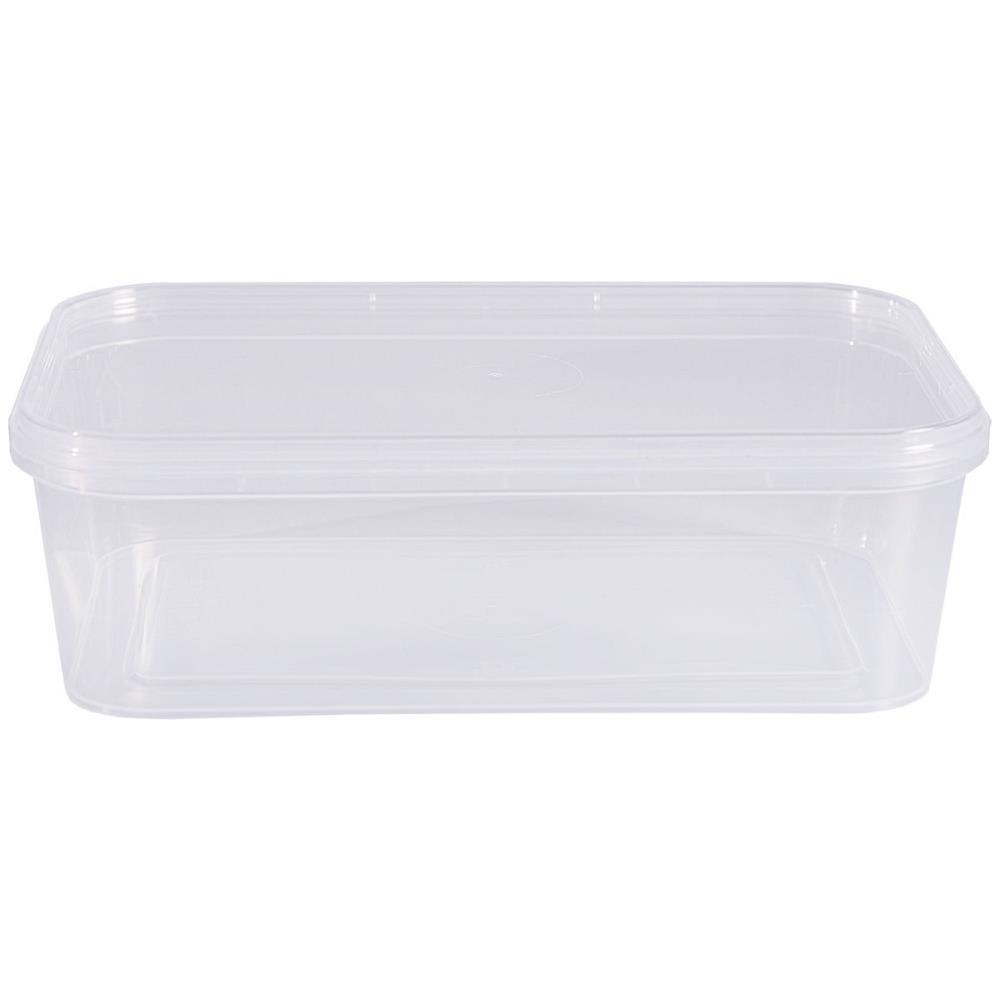 O pote retangular com lacre de 500 ml é resistente, pode ir ao freezer e micro-ondas.