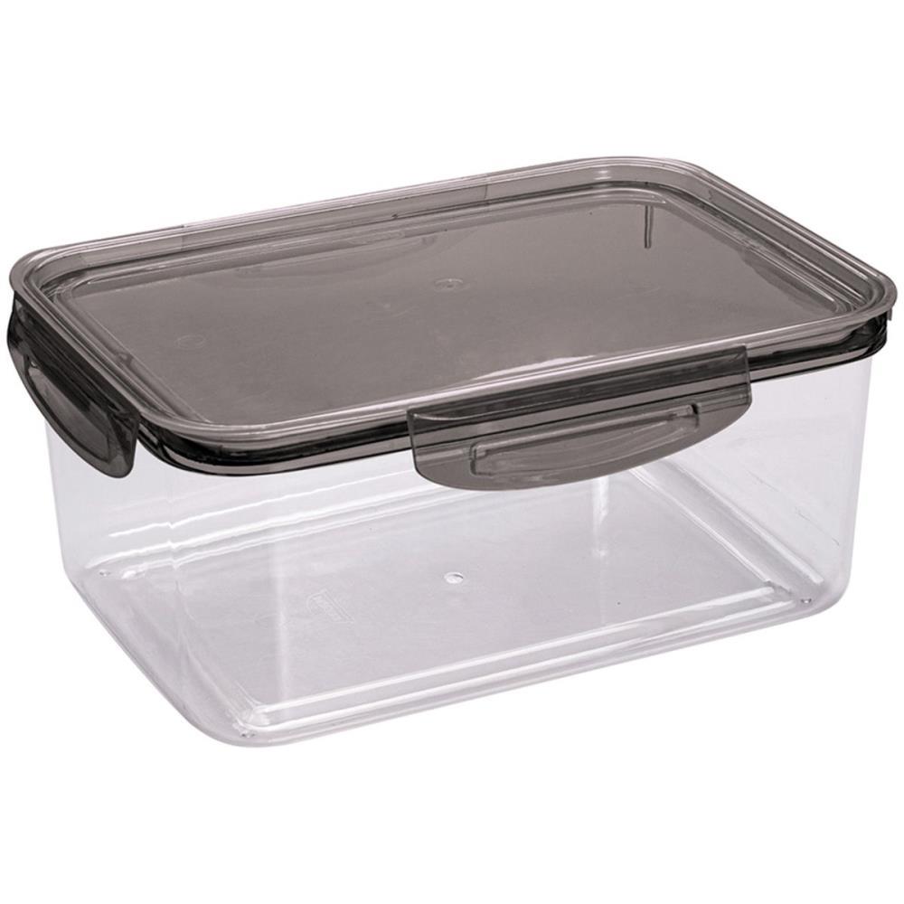 A vedacao com borracha garante o fechamento hermetico, conservando os alimentos frescos por mais tempo. - Quatro travas laterais, garantia e seguranca no fechamento. - Empilhavel e com formatos modulares. - Transparente como Vidro. - Encaixa em qualquer lugar otimizando o espaco do armario. - Tampa translucida que facilita a visualizacao dos alimentos quando armazenados em gavetas. - Nao pode ser levado ao freezer! - Borracha acoplada ao pote. Facil limpar e impossivel perder. - Feito em poliestireno PS, livre de BPA bisfenol A e atoxico. - Uso sugerido para geladeira e armarios! - Nao pode ser usado em micro-ondas e nem na Lava Loucas usar o lado macio da esponja.